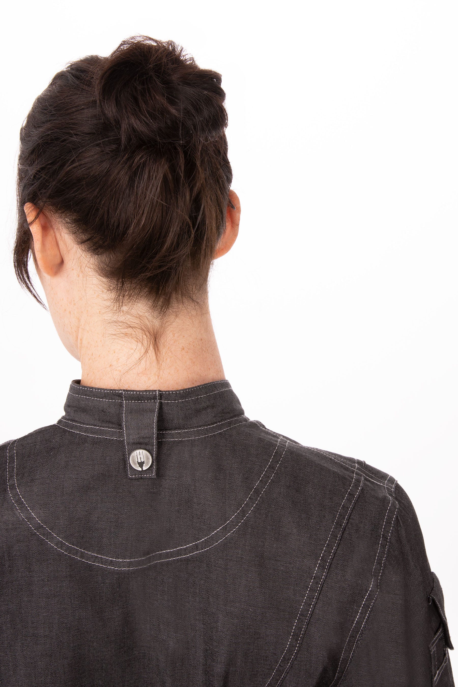 · Porta delantal en el cuello trasero con grifo de presión grabado