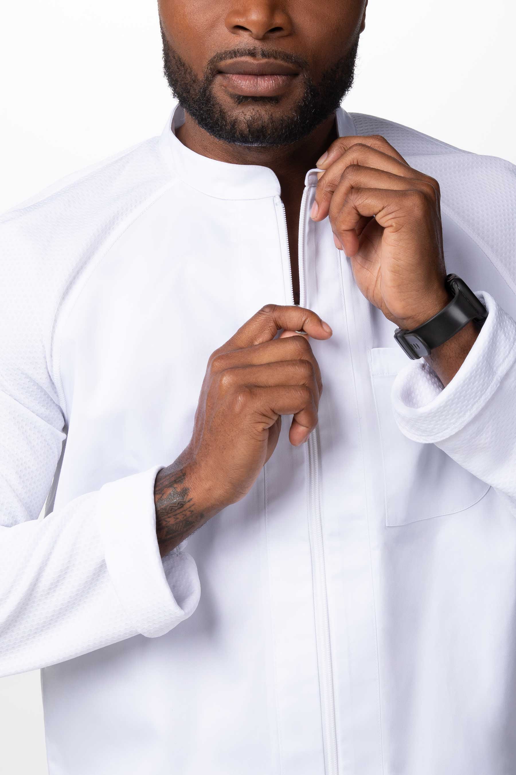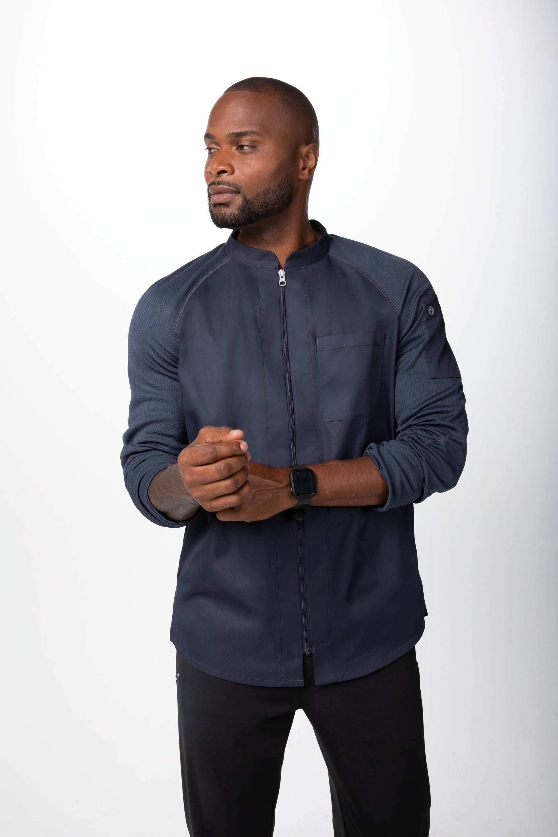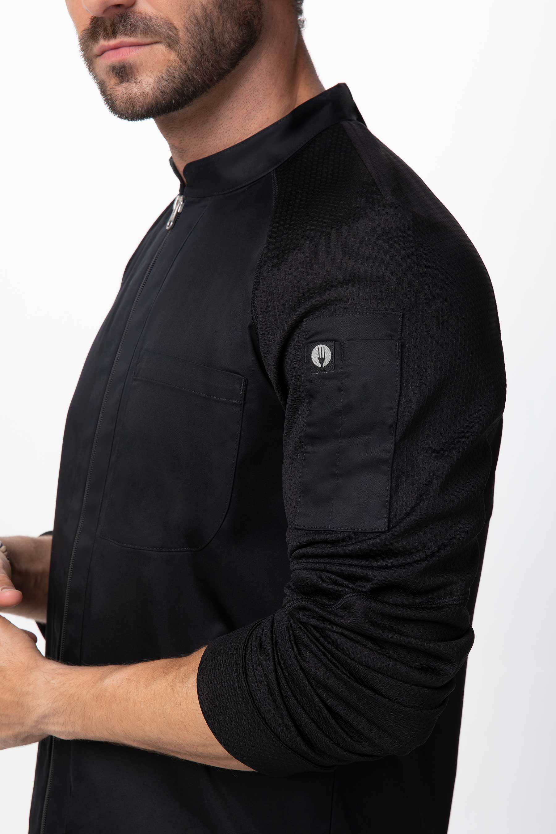 · Bolsillo para termómetro en la manga izquierda